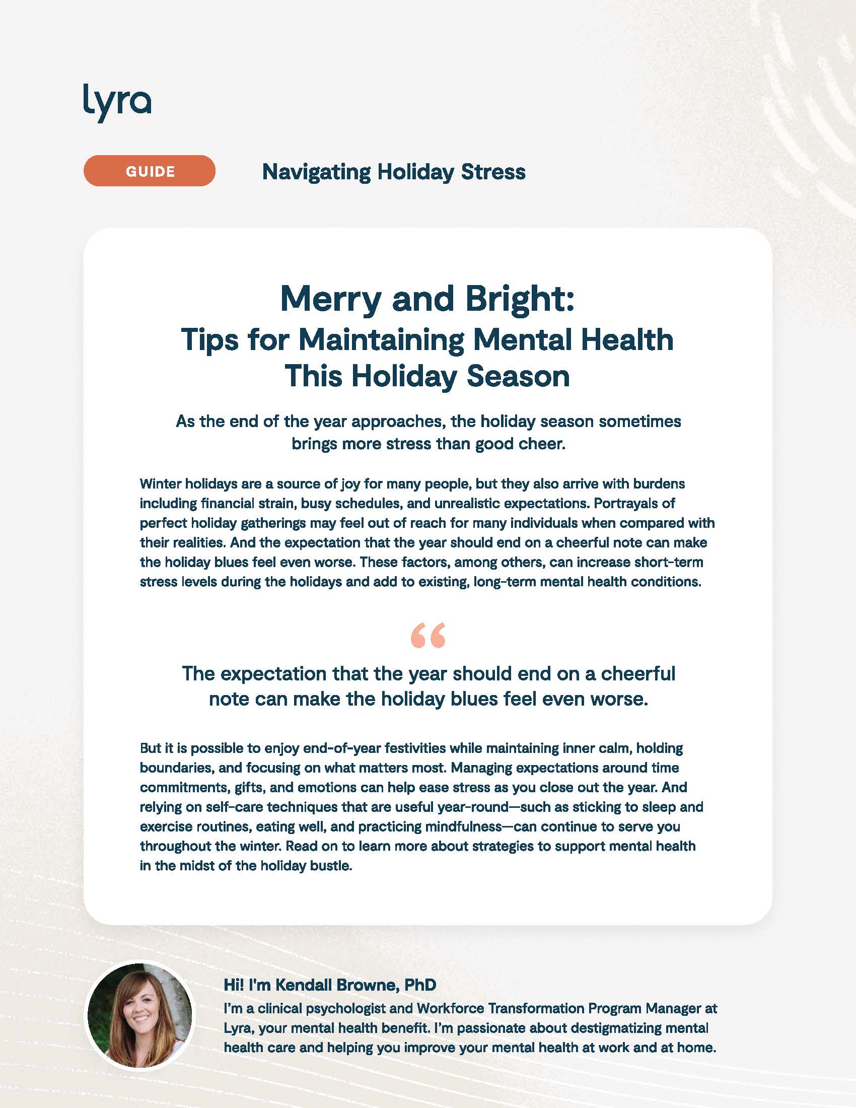 Check out this article from Lyra with ideas for your mental health this holiday season: